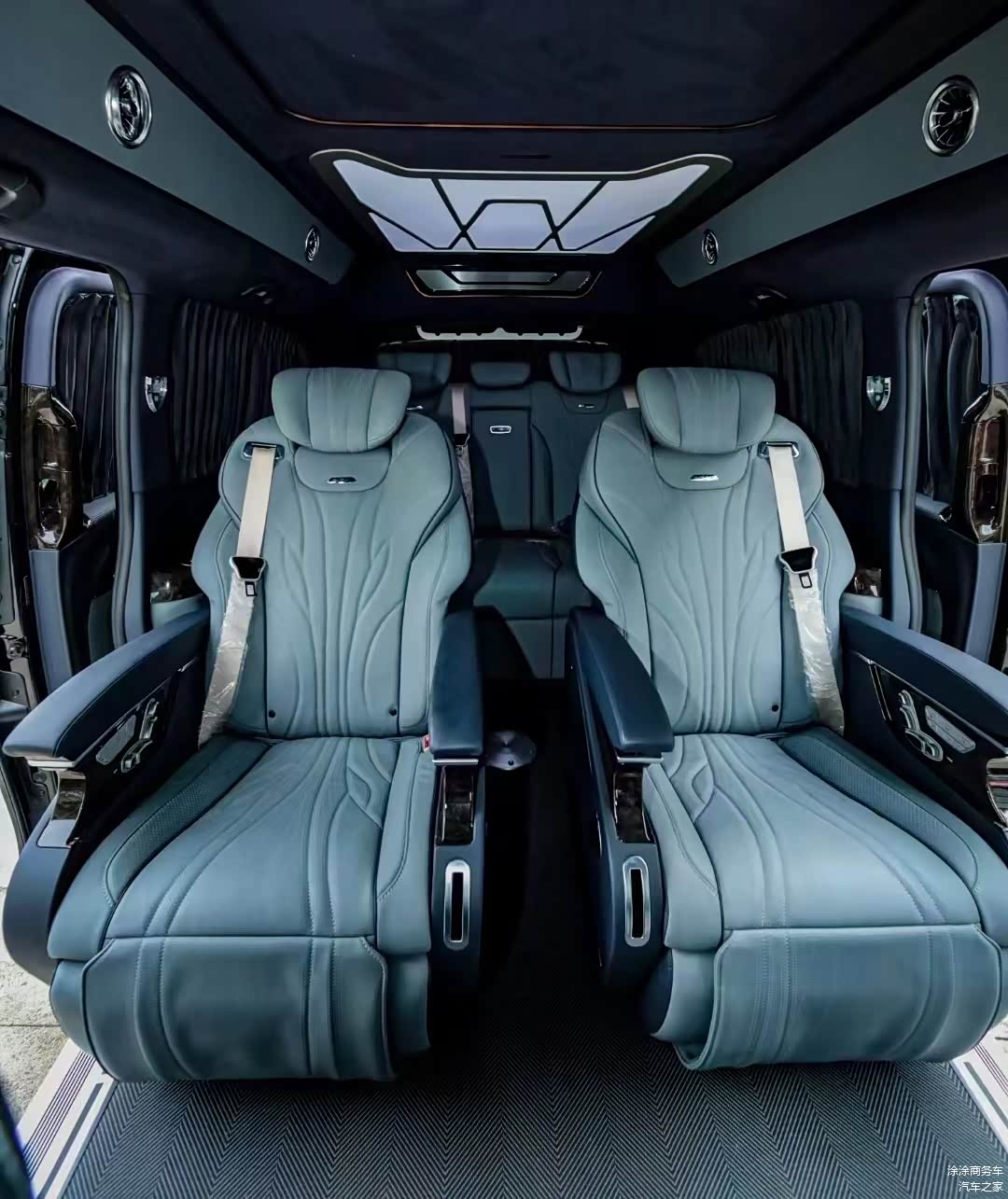 在高顶奔驰威霆车型中,出厂就拥有天窗的车型可谓是少之又少;今天这台车是其中为数不多的拥有天窗的车型。虽然天窗在国内的争议有点大,但相对一台MPV车型来说,天窗不仅能保证车内的通透性,其次还能更好的保证车内空气的循环流通,最重要的是即便仅是开窗,在一定程度上可以保证车内乘客的隐私。