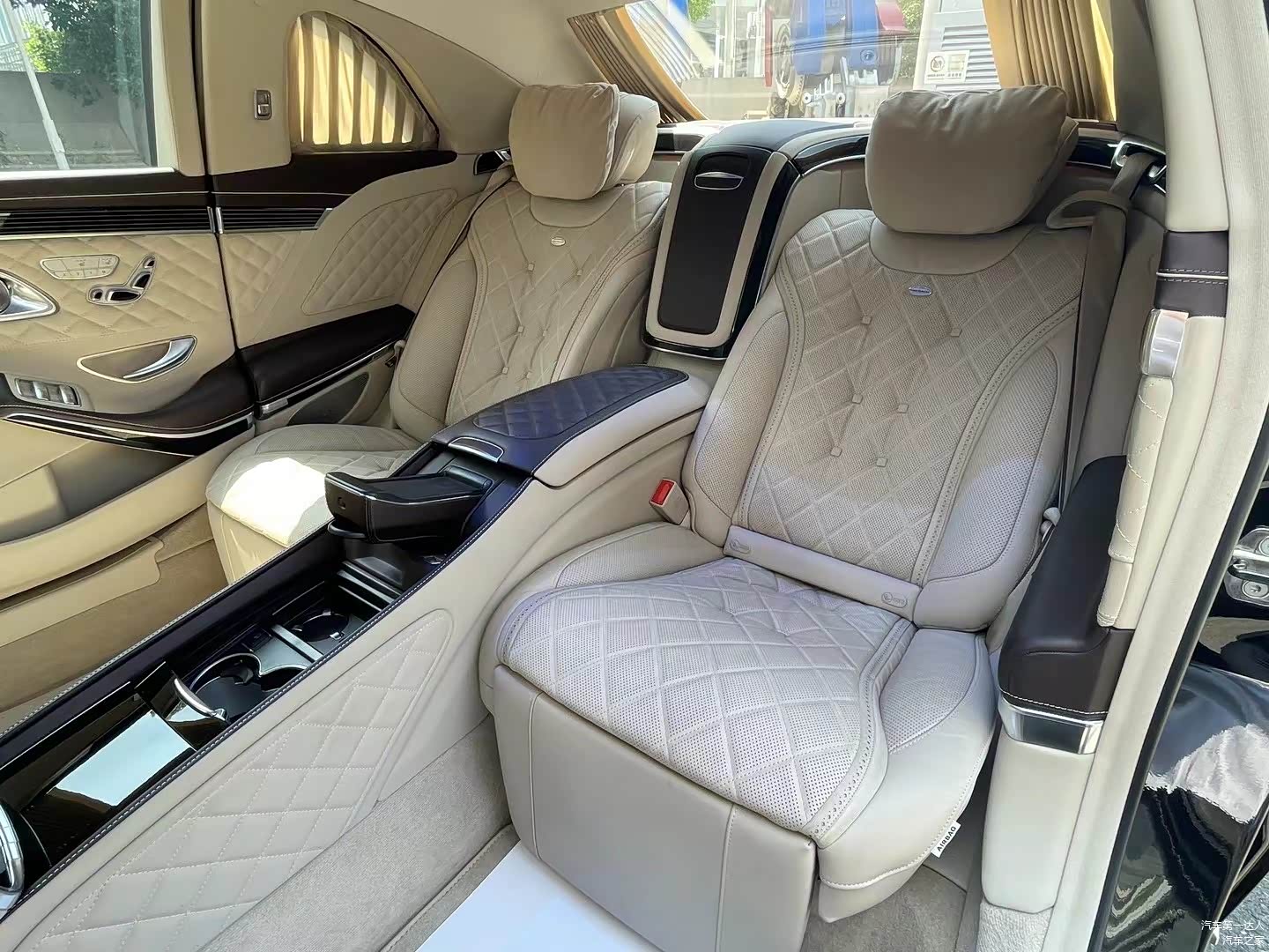 后排贵宾座采用航空座椅设计,相比古思特和飞驰更显奢华。在后排两张座椅的中间设置有车载冰箱,后车门结构经过了重新设计,同时在门板上还有独特的点缀。迈巴赫S680普尔曼外观上,车身采用加长设计。