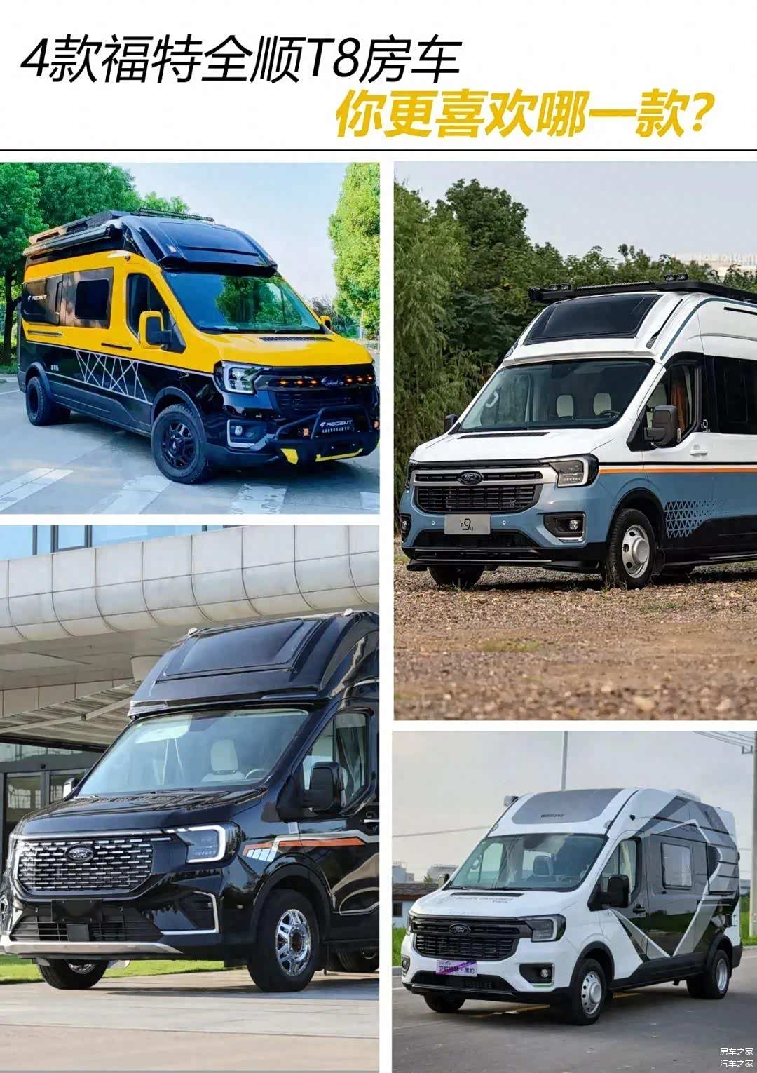 总结:这4款房车,外形设计不同,优势体现也不太一样,主要看大家看重的点在哪里。另外,非常值得一提的是,上装布局可以变化,但是一款好的基础车型是关键,福特全顺T8这款车搭载2.3T柴油发动机,匹配8AT变速箱,平顺性非常不错。安全辅助系统方面也配备比较全面,对于新手司机来说也并不难上手。还有一个很重要的方面:全顺T8的整车调校接近于商务车的驾驶感受,重心较低,驾驶座位下沉,行驶过程中的舒适性并不像是在开一款房车。