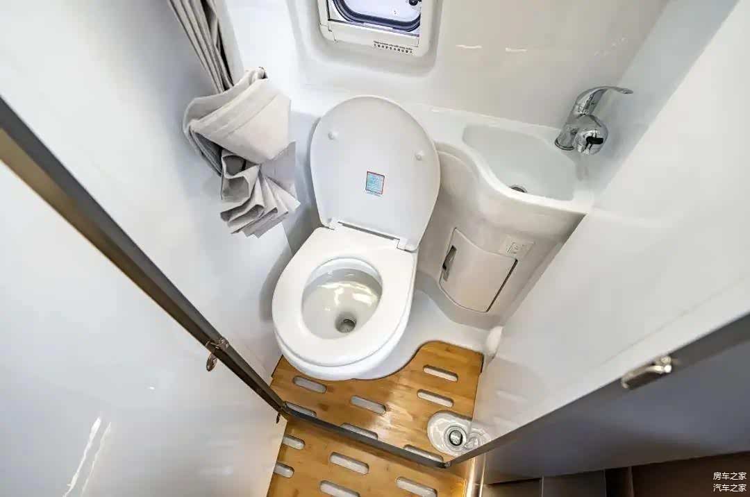 卫生间采用比较讨巧的设计形式,走进卫生间乍看居然没有任何的生活设备,当你仔细去研究的时候会发现,内部做了一款套件,将马桶和洗脸盆都集成到了这个位置,当我们在淋浴的时候,整个空间就独立出来了,这种形式的设计需要给设计师一个表扬。目前江铃大海牛V363这款车的指导价是54.8万元。