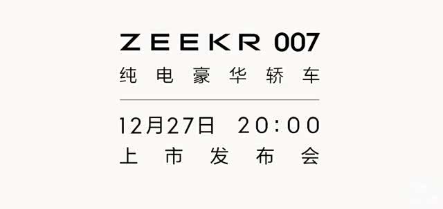 极氪ZEEKR 007将于12月27日上市