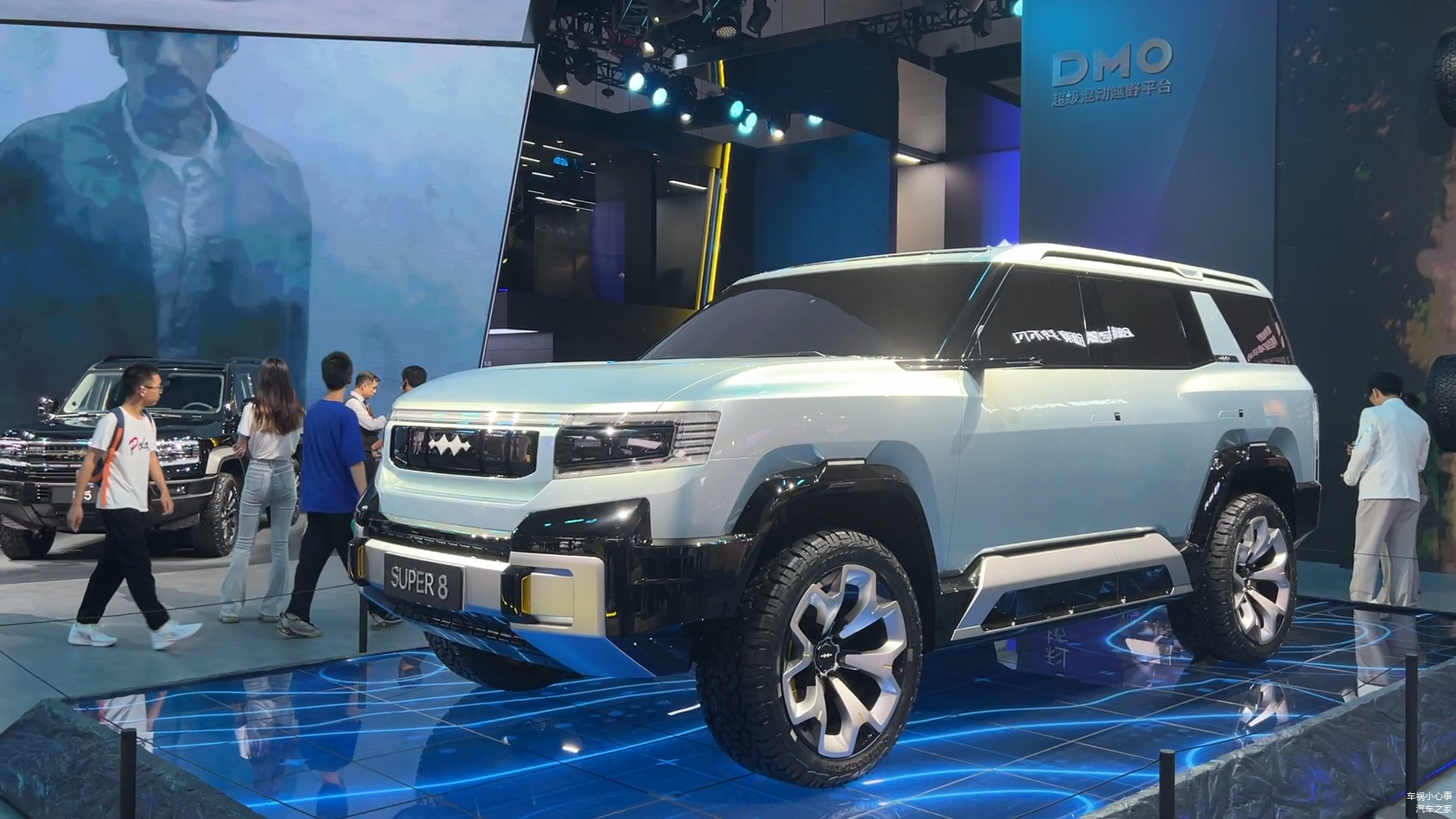 第三台新车 比亚迪方程豹豹8,造型设计的确显得非常硬派!它的定位高于方程豹豹5,作为一台大型的越SUV,它的个头显得是高大威猛。它动力配置方面,搭载的应该是缸内直喷式,2.0T专用混动发动机,马力272匹,和目前现款的仰望U8的动力配置,会有一点类似。只不过它匹配的是一个双电机,仰望U8是四个电机,动力性能还是有点差距的。它的电机马力可以达到660匹,功率485千瓦,在混动模式下综合性能会更强一些,配备的也是电动四驱,纯电续航里程会达到125公里。