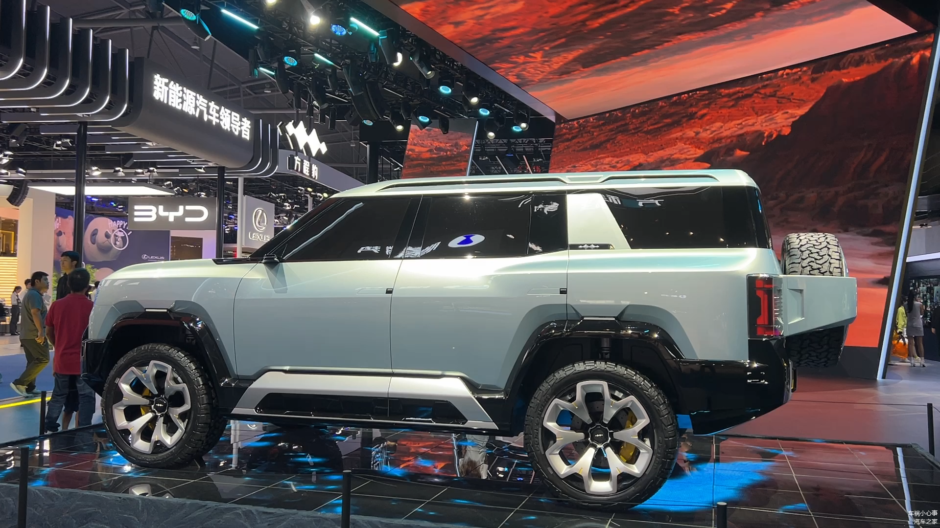 这款车的车身尺寸应该是5米到5.2米之间,高度会超过2米,宽度会接近2.1米,轴距也会达到3米以上,综合动力性能会非常强!这款车匹配的单电机,电机功率可达到250千瓦,四个电机1,000千瓦以上,综合性能完全不输给比亚迪仰望U8!它的离地间隙最大可以达到360毫米,涉水深度会超过1.1米,离去角是3.5度,接近角可以达到32度。这款车型可爆发的动力性能,的确是非常的强悍,马力会达到1,300匹!