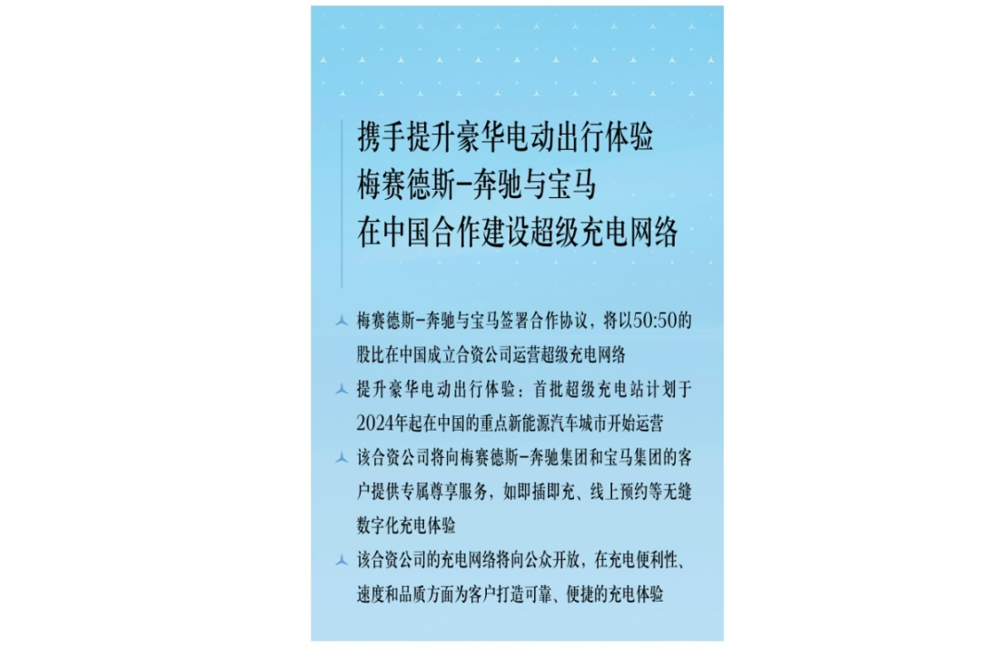 11月30日,奔驰、宝马宣布在中国成立合资公司,共同建设超级充电网络。