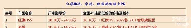 当然这也是不乏先例的。据了解,红旗HS5、豪越、欧蓝德的全国最低的裸车价分别为16.18万、10.16万以及12.98万。三者的价格差异还是比较大的,不知道上面在下所介绍的这些SUV中有哪台是你特别喜欢的呢?在这里感恩各位的拜读,并真心地祝尊敬的同学们升官发财、财源广进、虎虎生威。若然大伙钟意本文的话,不要忘了一键三连啦。