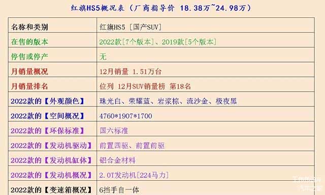 关于红旗HS5的销售方面简介:作为一汽红旗成员的红旗HS5,自登场至今表现绝对是深得车友们的青睐。