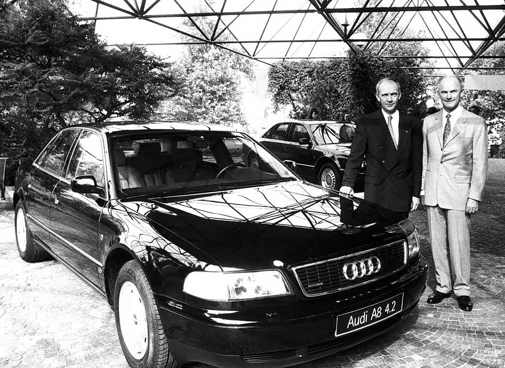 第一代A8获得了空前的成功。优雅的车身与奔驰S级(W 140)笨重的外观相比,有着完全不同的感觉。尽管两者的宽度和长度几乎相同,但奥迪变现的更为轻盈,更具驾驶乐趣。