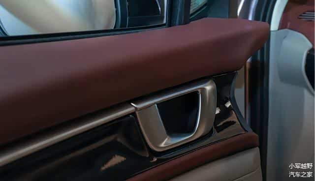车门内侧同样是采用了大量的皮质/软质材料包裹,缝线非常均匀,软硬材质的结合部位的缝合也做得十分到位。