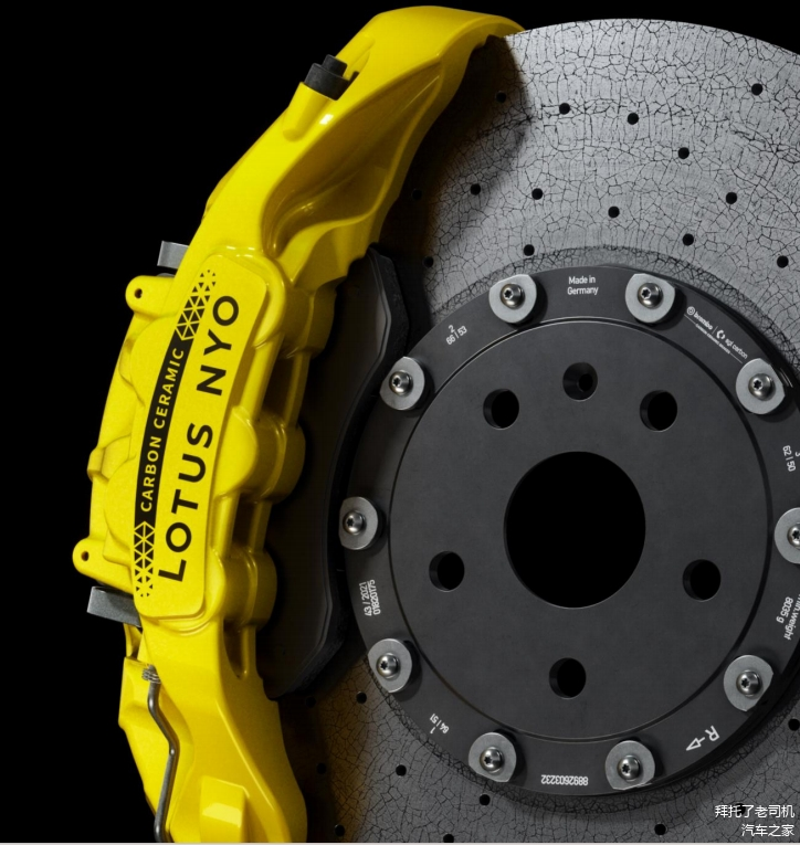 不止跑得快,还要刹得住。路特斯EMEYA使用了10活塞碳陶瓷复合制动盘,100km/h-0的制动距离小于33米。同时,碳陶瓷制动盘重量更轻,耐高温能力更强,强化了制动系统的性能,带来更出色的制动表现。