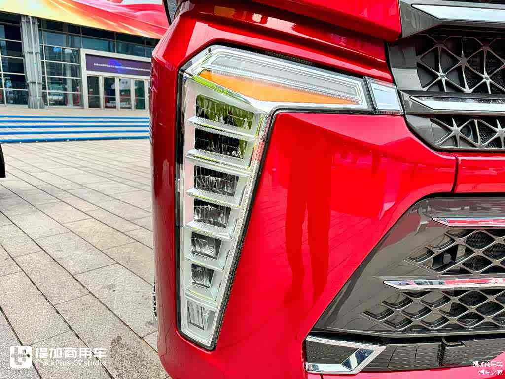 外观最夸张的部分莫过于大灯的造型设计,一对犀利的“7”字形大灯,内部设计7个反光灯碗,从转向灯到雾灯全LED光源,夜间照明效果与车灯使用寿命肯定都会有显著的提高。但是总感觉车灯设计的位置有点靠近边缘,卡友在驾驶这款车的时候要注意一下避免左右前角剐蹭。