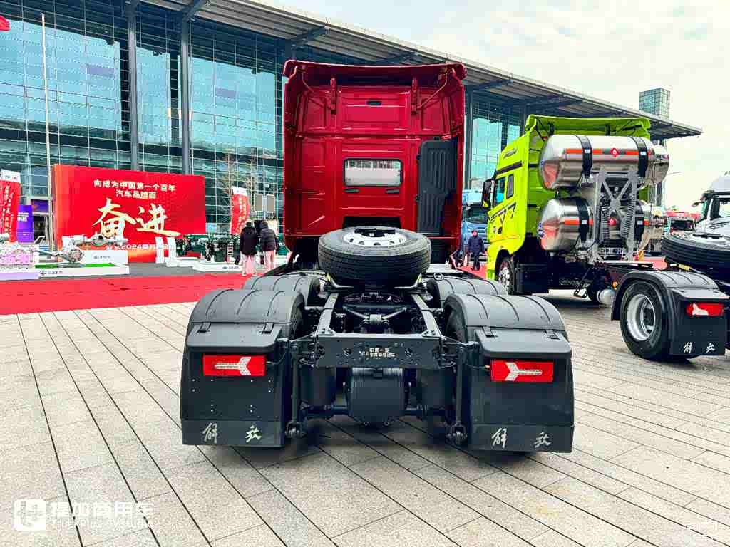 车辆后桥匹配全新一代440轻量化冲焊桥,差速器油的换油周期高达80万公里。该车桥的速比为2.389,在目前的量产重卡当中属于是最小的,这也就意味着在相同车速高速巡航的情况下,解放J7创领牵引车要比其他车型转速更低一些,燃油消耗量也会随之降低,具备更好的油耗表现。