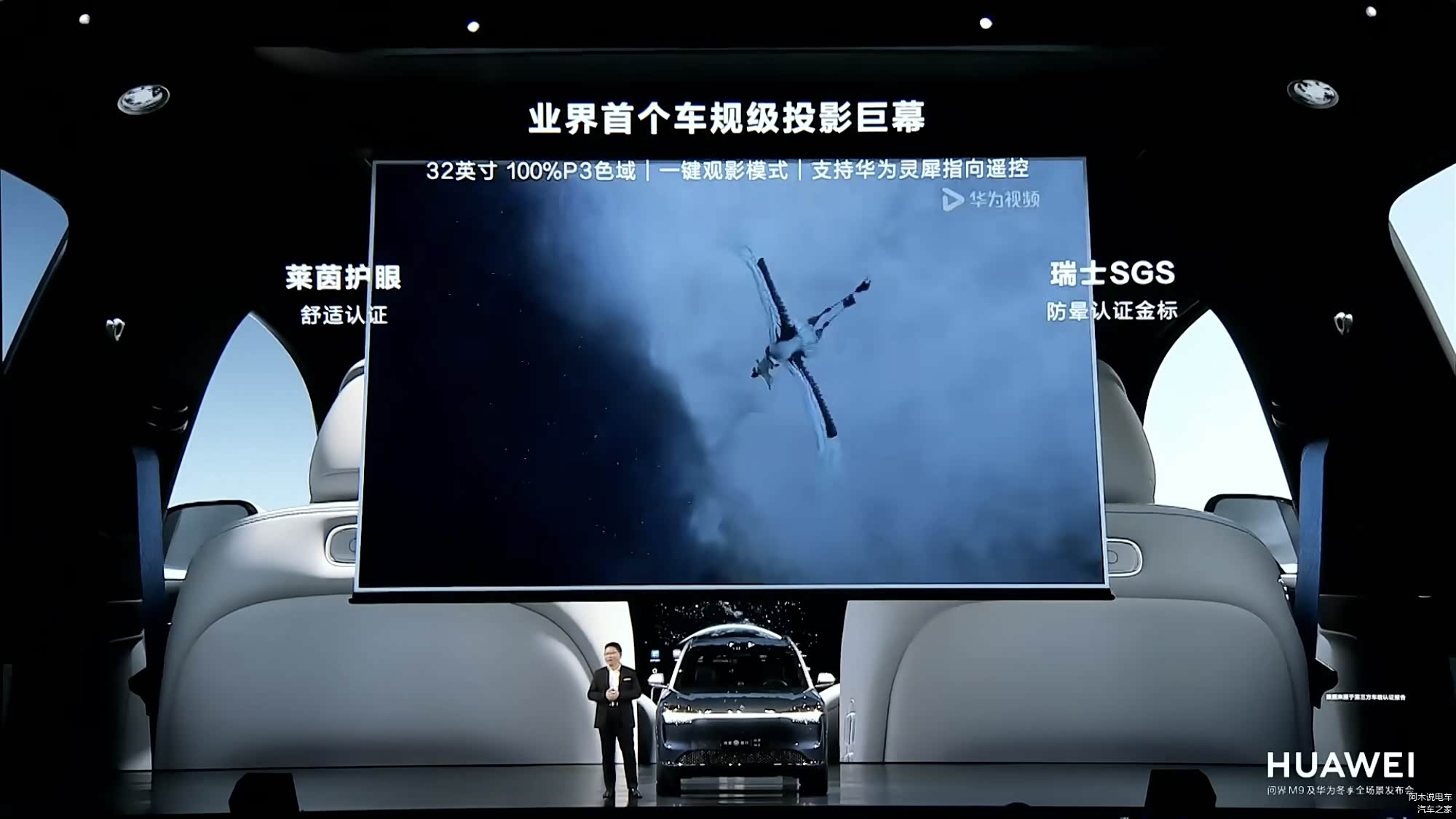车内搭载车规级投影巨幕,尺寸达到了32英寸。