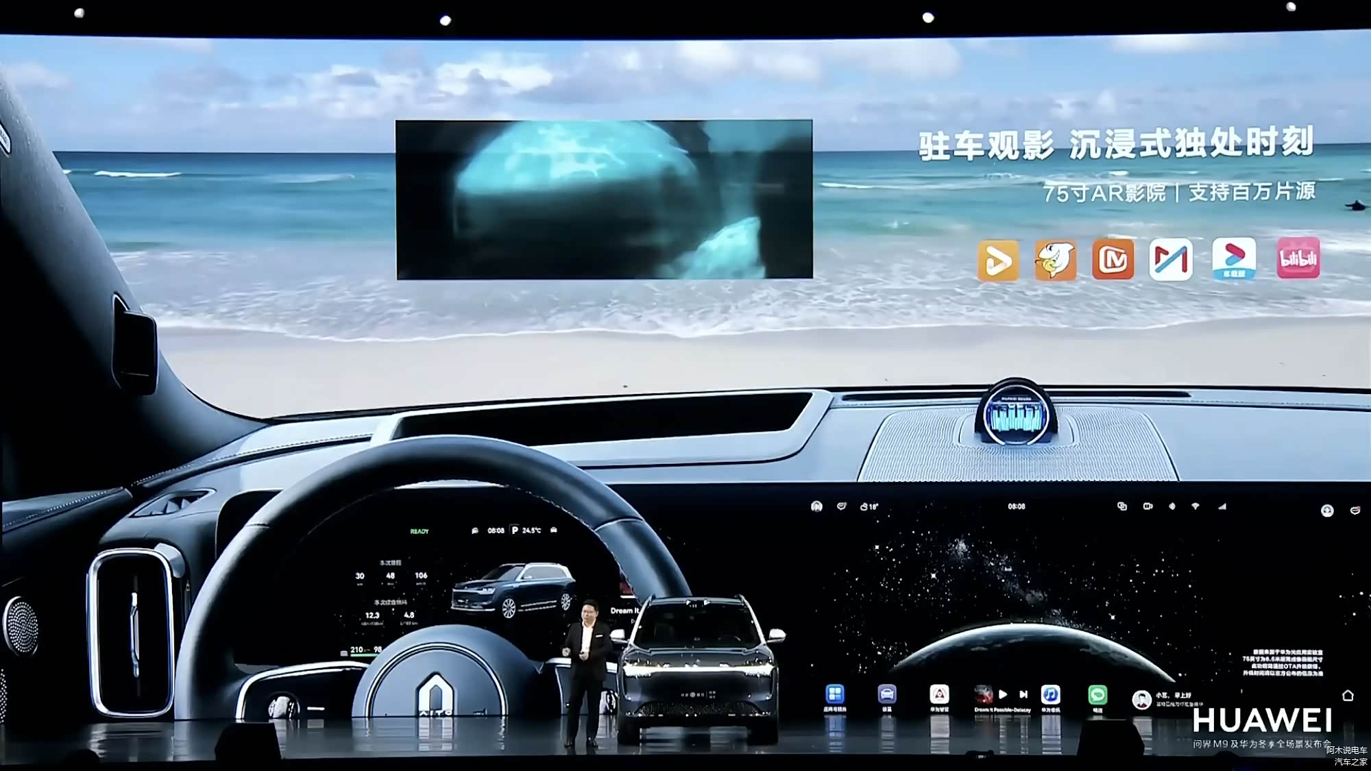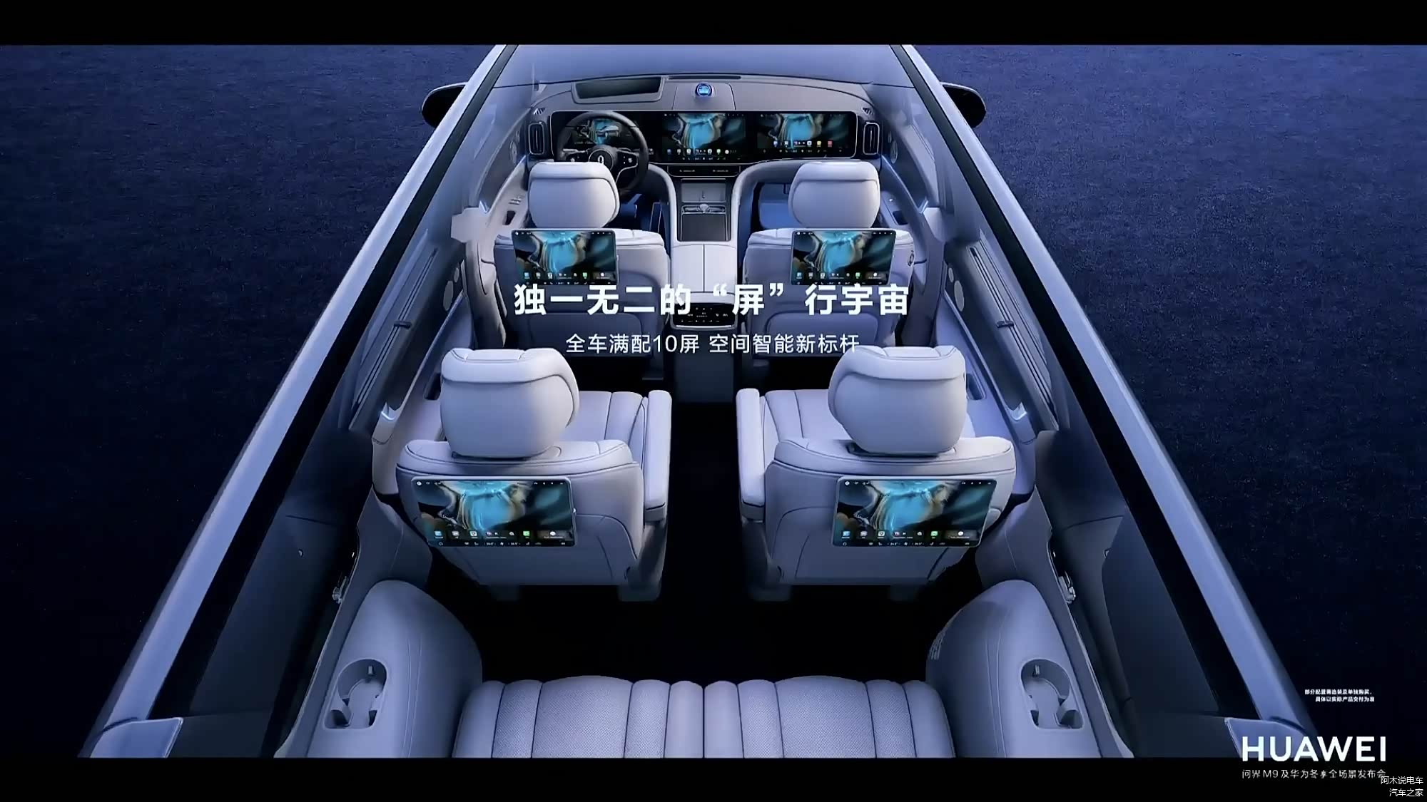 搭载了包含投影巨幕在内的8个屏幕,分别是前排3联屏,第二排与第三排分别提供两个显示屏幕,以及第二排顶部的可投影巨幕。