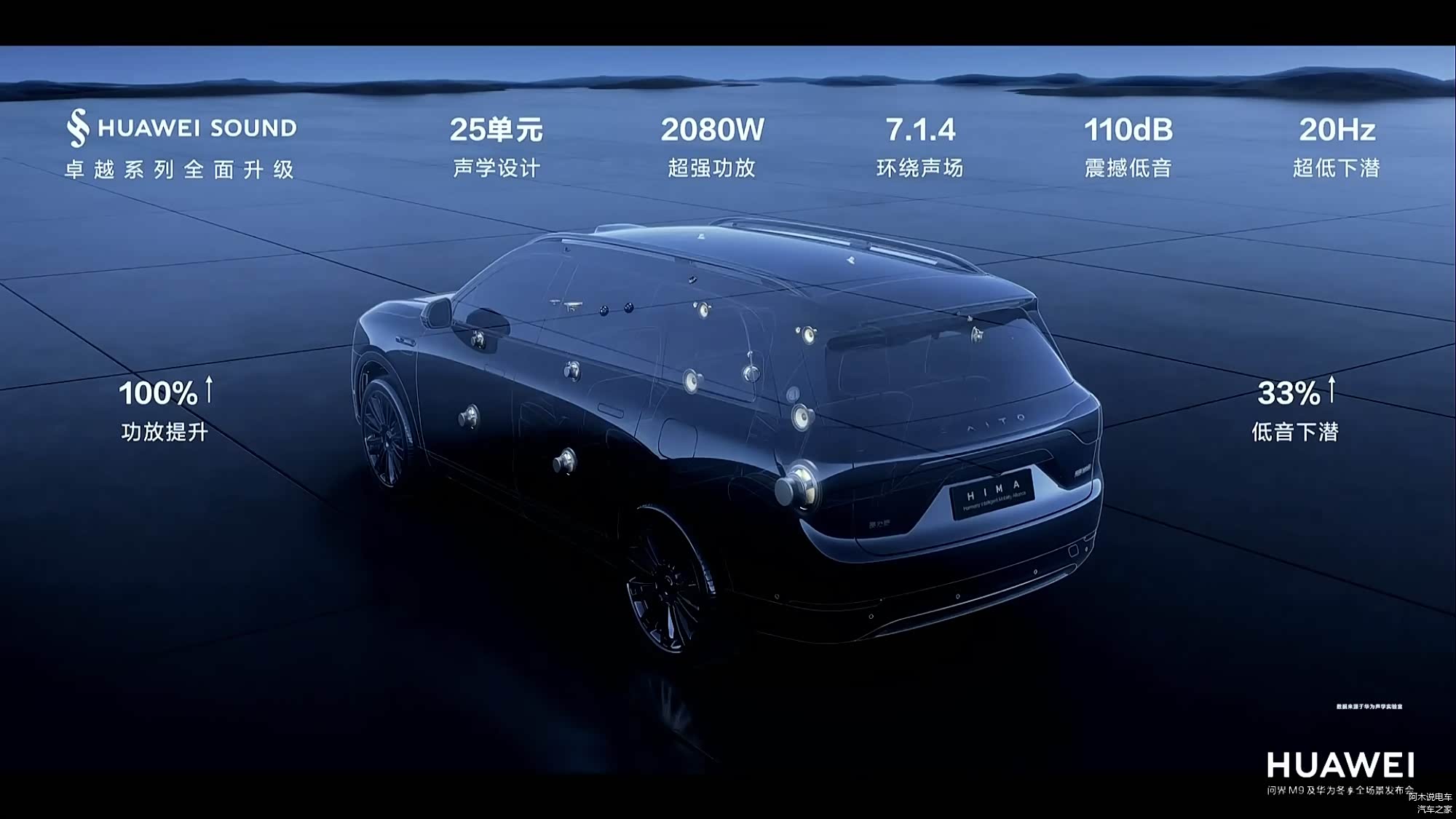 车内搭载了25个音响单元,功放的功率达到了2080瓦。