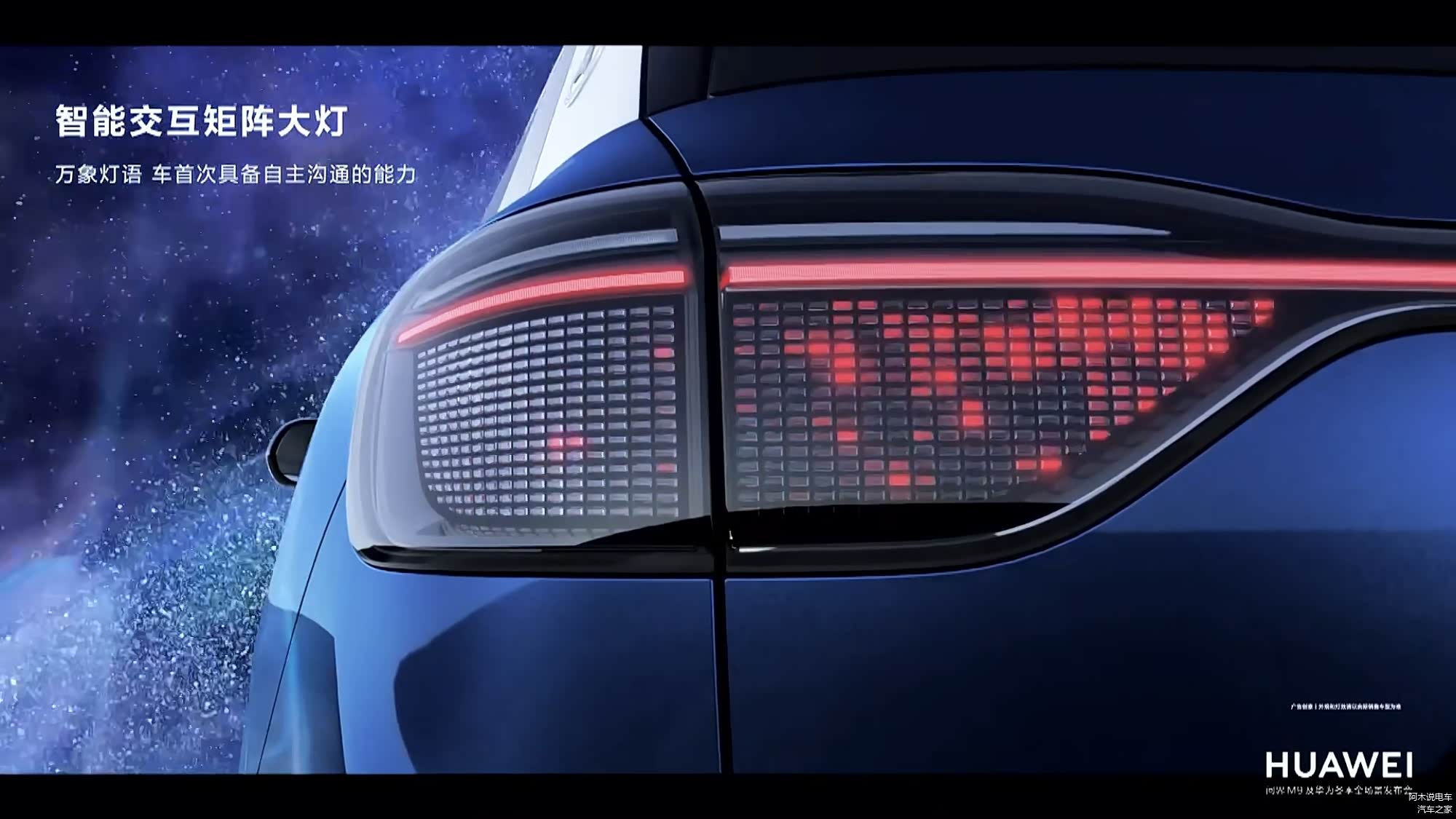 全新投影大灯,支持投影功能。新车上的矩阵灯组可以支持显示充电时间倒计时等功能。