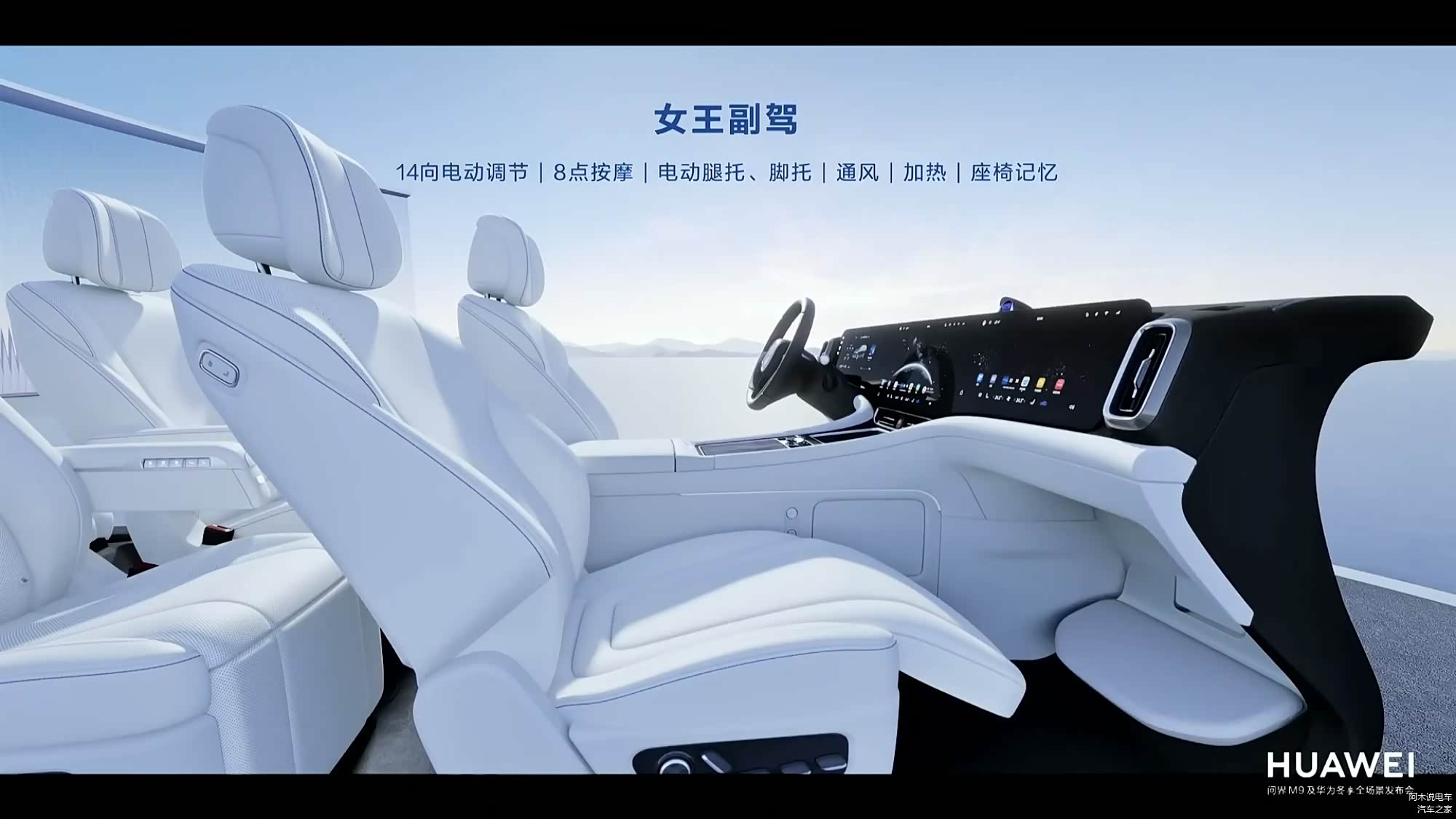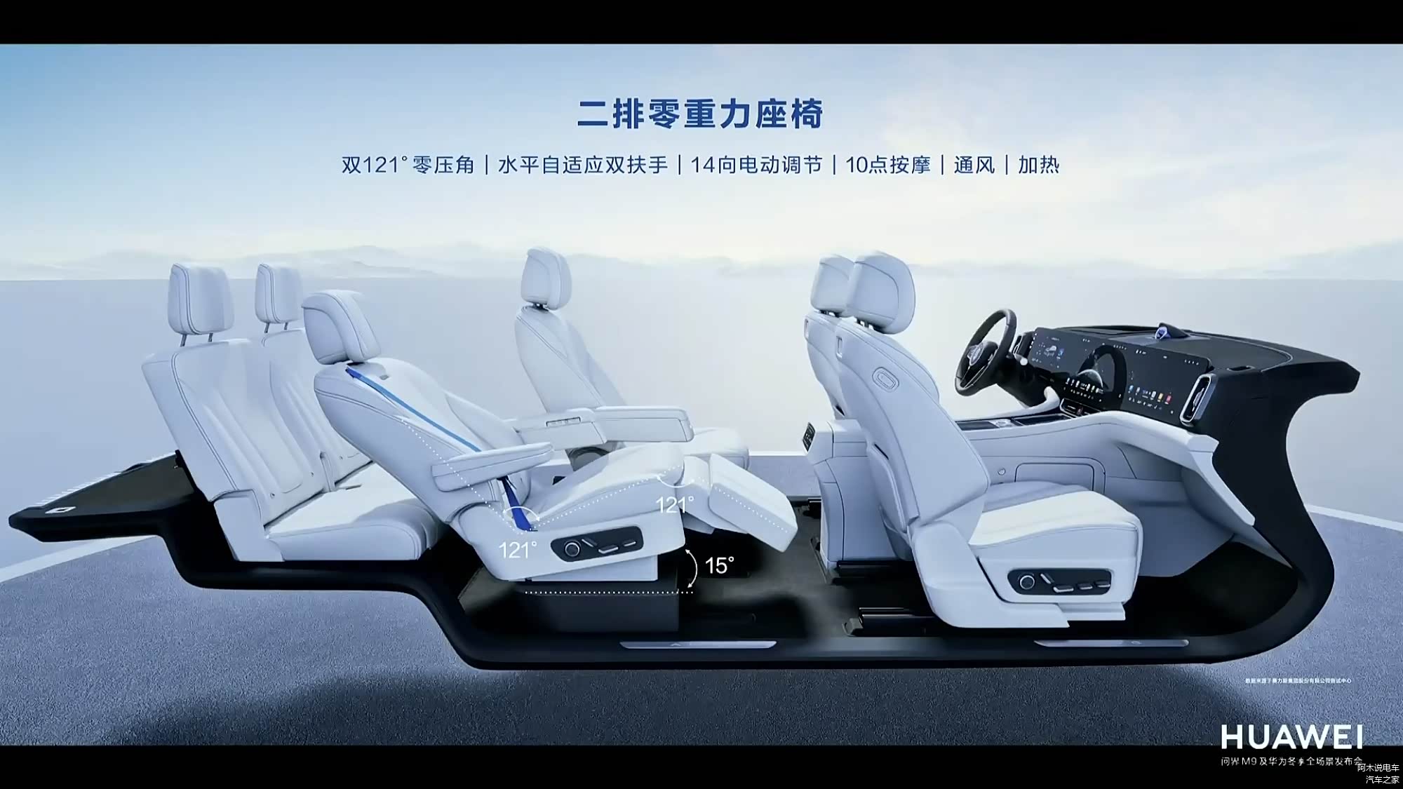 支持女王副驾,以及第二排零重力座椅功能,同时座椅支持座椅通风、加热、按摩功能。