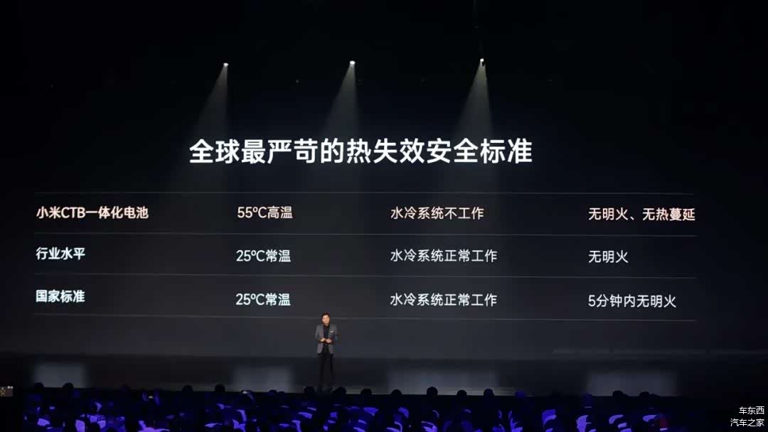 小米在电池上采取了14层物理防护和高于行业的安全检测标准,确保电池在水冷失效的情况下还可以不出现明火。最值得一提的是,传统的方形电池泄压阀及电极都是向上放置,一旦发生电池热失控,势必会对乘员舱的安全造成影响。因此,小米联合宁德时代的电池团队设计了泄压阀及电极倒置的一体化电池,同时辅以双大面液冷和电池间165片气凝胶隔热技术,最大限度保证了电池的安全。
