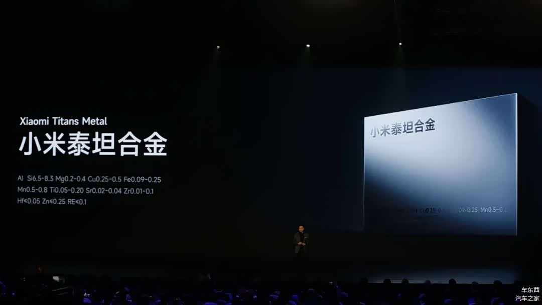通过这个压铸岛可以实现9100吨压铸锁模能力,实现小米汽车的后地板一体化生产。此外,雷军提到,在车身压铸的过程中,现有合金不能很好满足小米汽车的性能需求,于是小米联国家级材料重点实验室共同研发了小米泰坦合金(Xiaomi Titans Metal)。