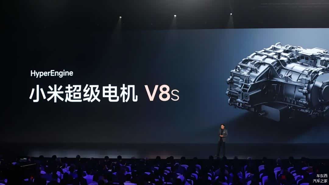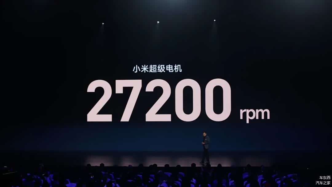 然而,小米的技术突破显然不止于此,在发布会一开始雷军直接为大家带来了全球最快的小米超级电机——小米超级电机V8s,其具备27200rpm的全球最高转速,其最大马力达到578ps,峰值功率425kW,最大峰值扭矩635N·m。