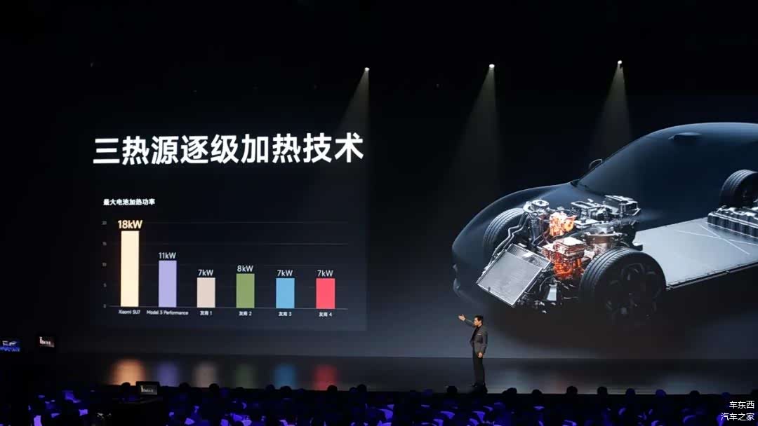 在热泵的基础上,小米还研发了三热源逐级加热技术,将电驱动产生的余热进行再利用,实现了18kW的最大电池加热效率。对此,雷军表示小米汽车将在冬季续航中有相对较好的表现。