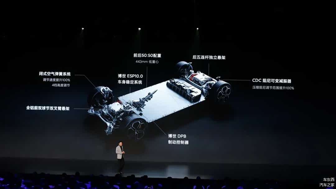 在机械设计上,小米汽车采用布雷博四活塞卡钳和博世DPB与ESP10.0系统,在刹车系统上还配备了四重制动安全机制,保障车辆安全。而在底盘设计上,小米全栈自研底盘控制算法,可以实现地面状态、弯道姿态、空气动力自适应和主动侧翼支撑。