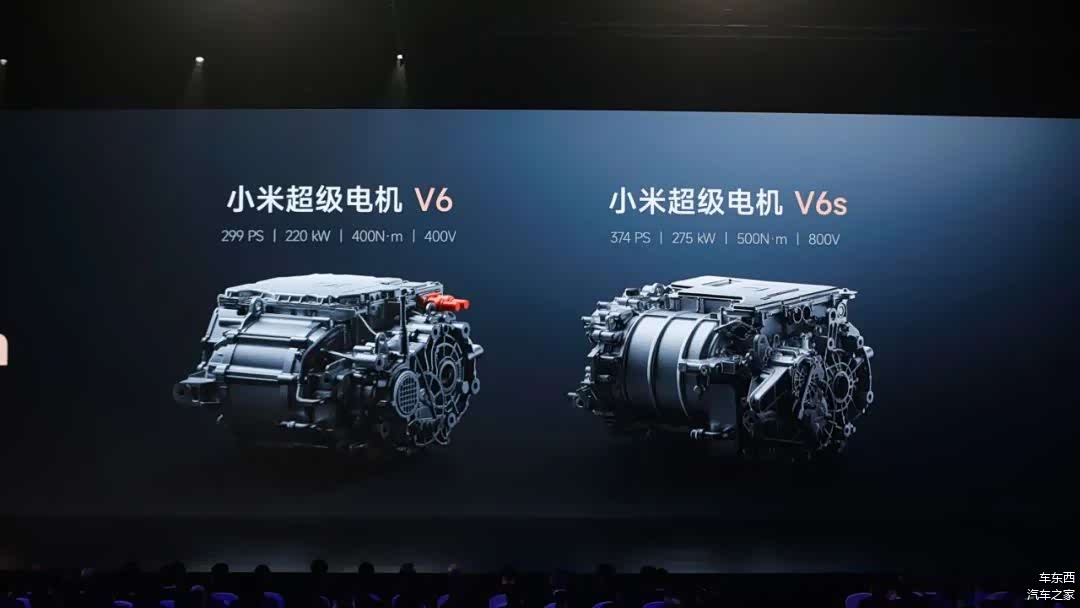 本次发布会首先发布了V6和V6S两款电机,据介绍,V6的命名来源于其电机等效汽车V6发动机,V6和V6S分别基于400V和800V平台,同时具备220kW/275kW的最大功率以及299ps/374ps的最大扭矩。