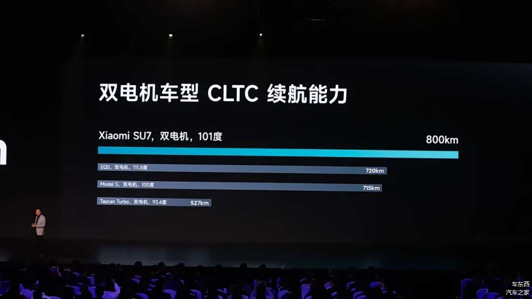 续航方面,小米汽车提供101kWh电池容量,实现CLTC续航800km。