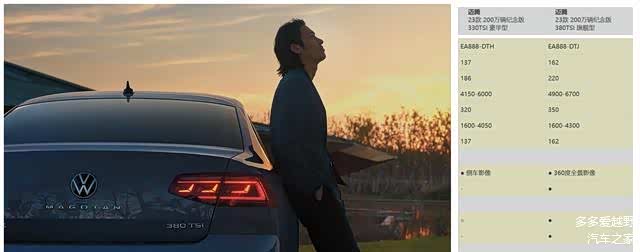 首先,最直观的差异在于它们的动力数据。迈腾330搭载的是2.0T低功率发动机,最大马力达到186匹,扭矩峰值达320牛·米。