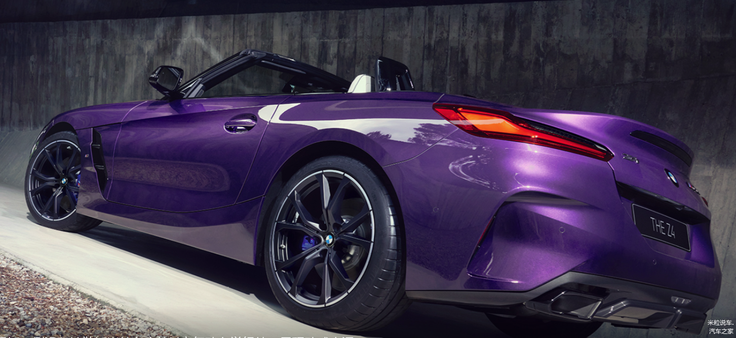 除了价格以外,我觉得这款宝马Z4最大的优势在于敞篷外观设计,扁平化的车身姿态,超宽的轮廓,再加上软顶造型,颜值感相当给力。而且在今年二月份还增加了全新紫红色的外观,档次感进一步凸显。这款配色是新款宝马Z4最明显的身份区分,这也是一款全球配置。