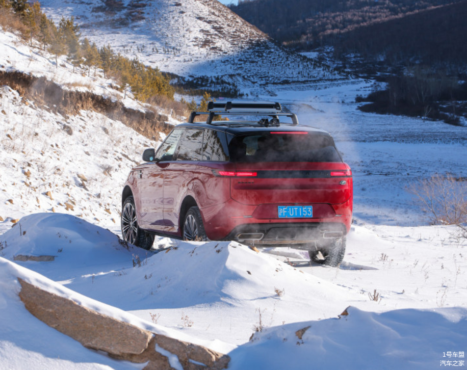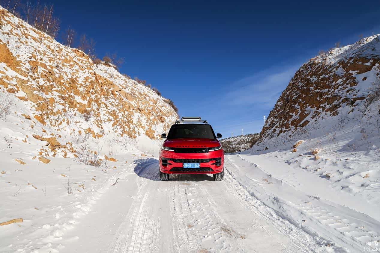 好在笔者所驾驶的这台400PS典范版的2024款揽胜运动版车型匹配有23英寸的超大尺寸轮毂以及高低可调悬架,在大尺寸轮毂与最高车身姿态的加持下,这台车对于积雪的厚度有着更高的兼容性;