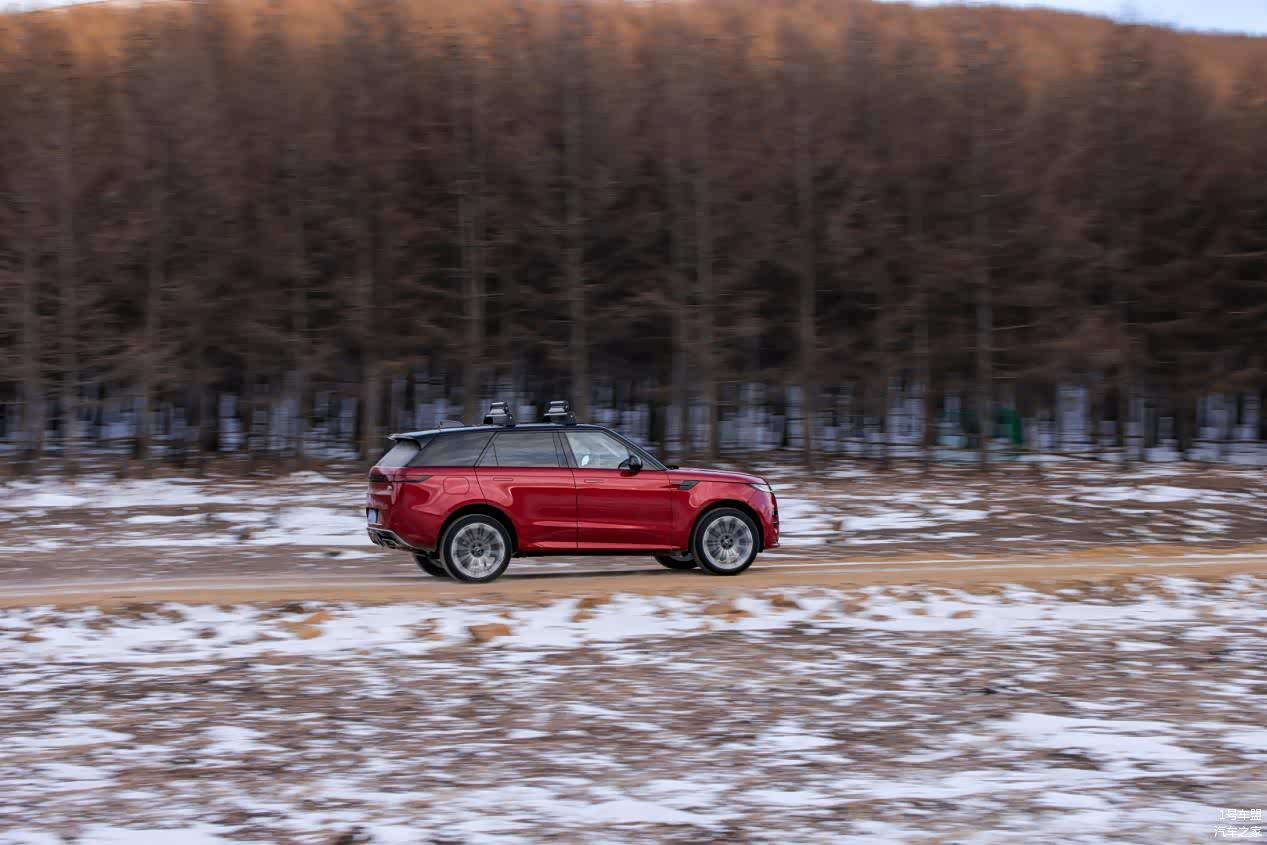 笔者此次驾驶的是一台400PS典范版的2024款揽胜运动版车型,这台车搭载一套全时四驱系统,并匹配有带锁止功能的多片离合器式中央差速器,在初入雪原林海时,整体的行进感受与在铺装路面上基本无异,面对湿滑结冰的非铺装路面,依然保持着非常好的抓地性能,基本实现了给油就走。