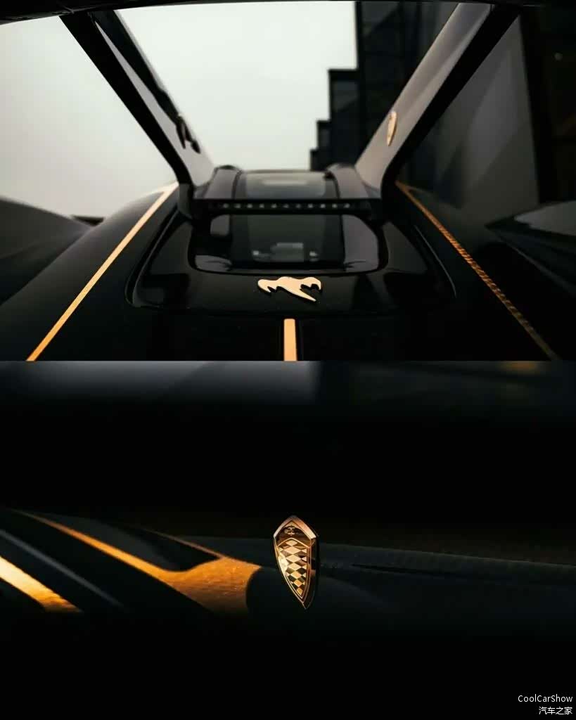 看到这辆黑金色的Jesko Absolut,不禁让人想起那辆被称为“Phoenix”的Agera RS,同样为黑金配色,最初是为美国房地产大亨Manny Khoshbin建造的,整车覆盖着裸露的碳纤维车身板件,并搭配金色装饰。