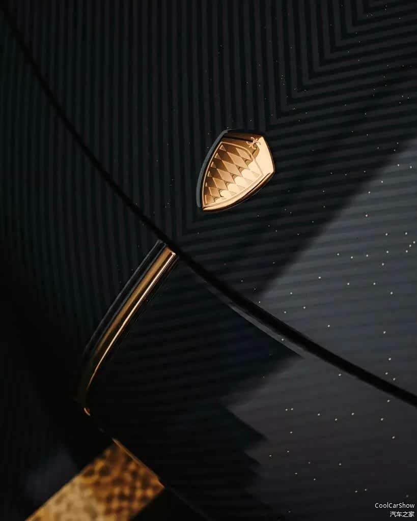 至于大家看到的这辆Jesko,其外观的每一个部分都是由裸露的碳纤维制成,据说裸碳纤维成本高达44万美元,高于2辆法拉利 Portofinos的价格。并还涂上了一层看似有金色斑点的透明涂层,身上的各种外观部件都加入了真正的24金。