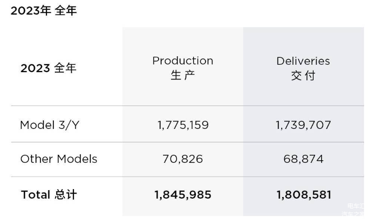 双方公布的数据显示。2023年,特斯拉纯电车型生产184.60万辆,交付180.86万辆;达到其设定的全年180万辆目标,并略高于华尔街的预期。