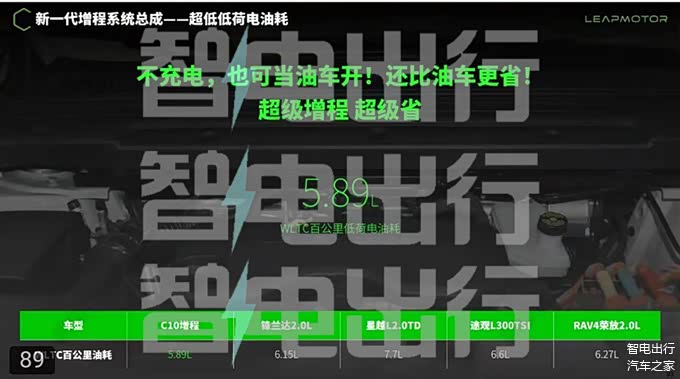 C10增程车型的发电机最高功率可达96.5%,每升燃油发电量可达3.27kWh。增程车型不充电,也可当油车开!还比油车更省!