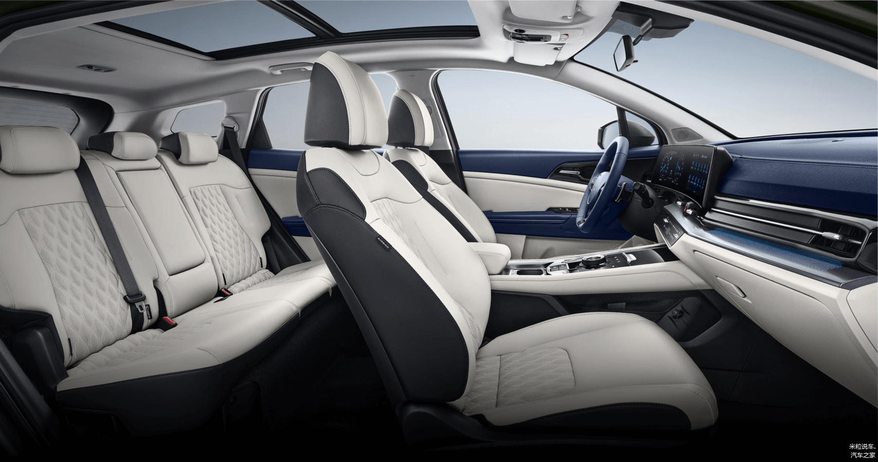 内饰设计表现不错,匹配了双12.3英寸的贯穿式曲屏设计,还拥有旋钮样式的换挡机构,大量钢琴烤漆面板使用让车内看起来还是很显档次的。但是仔细研究后你会发现,这款狮铂拓界并没有想象得那么厚道,比如低中配车型上没有天窗,虽然也搭载了L2级智能辅助驾驶系统,但很可惜在低中配车型上缺席了。