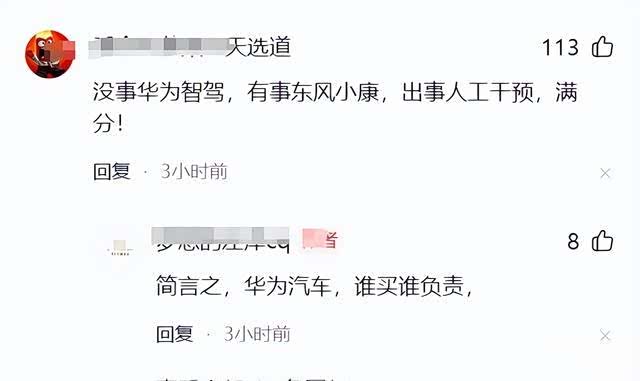 “没事华为智驾,有事东风小康,出事人工干预,满分!”