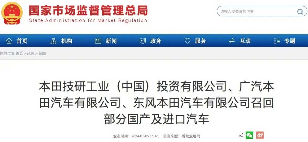 广汽本田召回2018年8月27日–2020年8月6日期间生产的部分国产混动版讴歌CDX、奥德赛、雅阁系列汽车,共计75691辆;