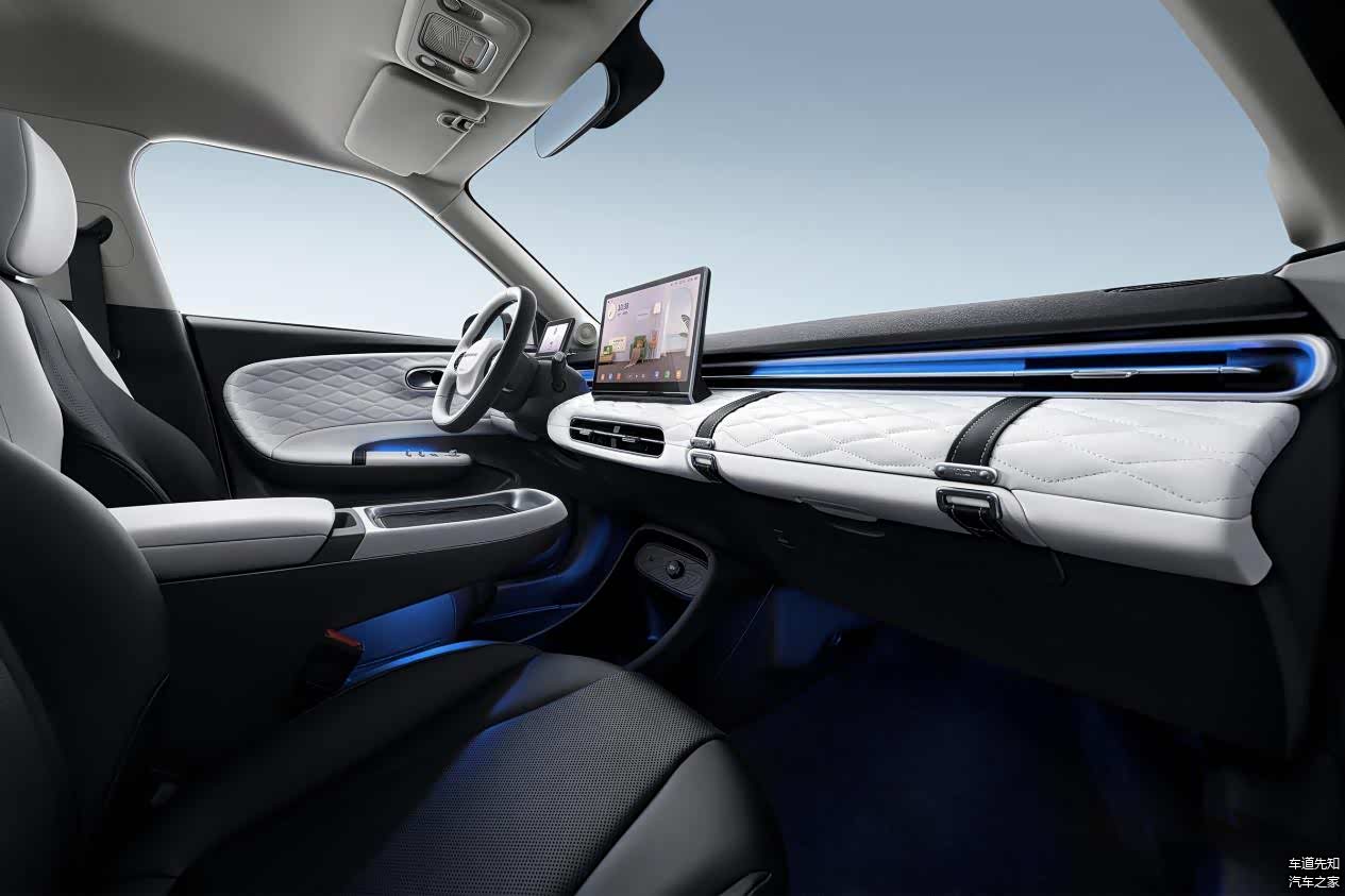 新车共有4款配色,分别为悠然蓝、无忧白、幻想紫、心悦黄。从侧面看,纳米01配备了隐藏式门把手,车门下方还配有黑白间色的装饰条,搭配浮云朵朵撞色车顶设计,17英寸五芒流星轮毂,极具视觉冲击力。眼前一亮的是,东风纳米01还采用了同级唯一的零界无边框车门设计。车身尺寸分别为4030/1810/1570mm,轴距2660mm,宽适大空间相比同级的五菱缤果与比亚迪海鸥都要大一点。