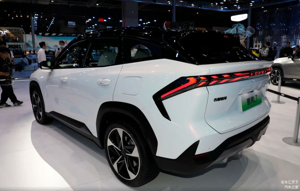 最后再来聊聊银河L7的静态部分,从外观设计上来看,银河L7采用家族式的设计语言,银河涟漪美学的设计让整个前脸更符合新能源车的调性,同时两侧L型样式的日行灯组,以及造型犀利的头灯组,也让银河L7的前脸显得更具攻击性。除此之外,银河L7的尾部也同样如此,造型犀利的尾灯组带来了较高的辨识度,同时顶部的扰流板和厚实的后包围也进一步的提升了车尾的年轻运动气息。