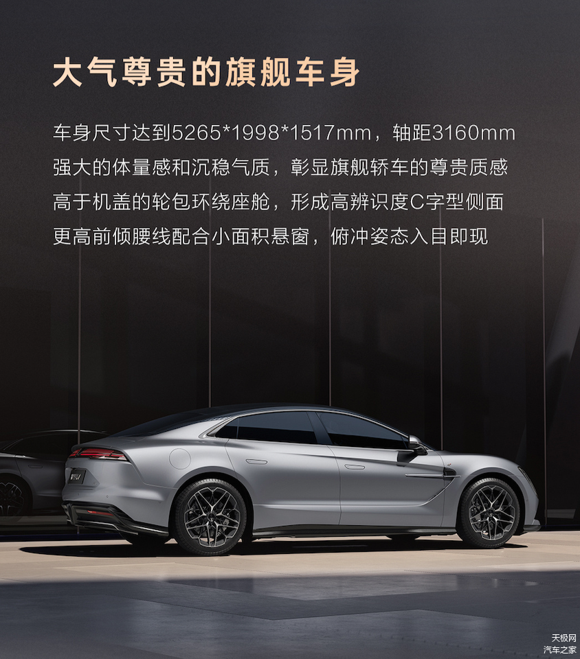 根据宣传内容,仰望U7的三围尺寸达到5265/1998/1517mm,轴距为3160mm,与此前蔚来发布的首款行政级纯电轿车蔚来ET9相似,后者尺寸为5280/1998/1520mm,轴距为3250mm。不过仰望U7的风阻系数则是达到了惊人的0.195cd,而之前小米公布的小米SU7风阻系数同为0.195cd,官方宣传小米SU7的风阻系数为全球量产车中最低。那么换句话说,仰望U7或许也将获得该项殊荣。