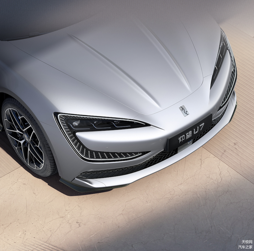 前舱机盖上,新车有两道凸起的筋线设计,从视觉上也凸显出其运动感。而这样的设计在行驶过程中还能起到对风阻的环绕导流作用,让气流可以沿着车身流向两侧,形成一股强劲的下压力以稳固车身。从侧面也说明,仰望U7具备强大的动力系统,更加契合其运动属性。