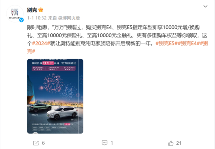 别克汽车是在今年刚开年就发布了这个消息,并承诺还会有更多的购车权益等着消费者领取。
