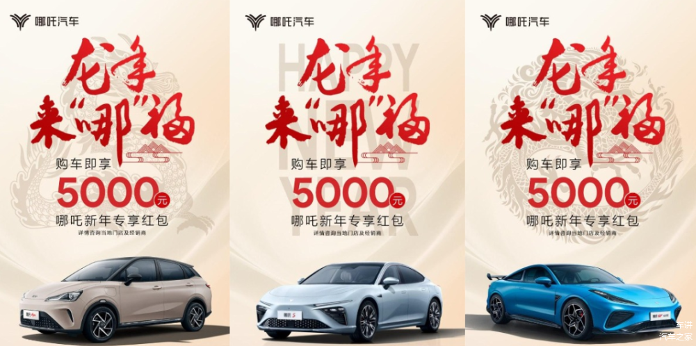 第四款是哪吒汽车,这款车刚开年人家就发了一个海报,只要你在31号之前买车,来了就先给你5000块钱。