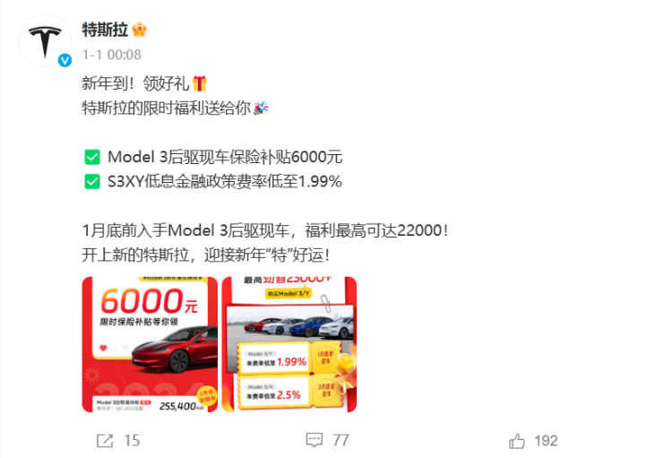 特斯拉Model3目前最低售价26.14万元,官方还给了6000元的保险补贴,只是要求需要在1月31日之前提车。当然相对于昂贵的售价来说,这点点小钱似乎也不算什么。
