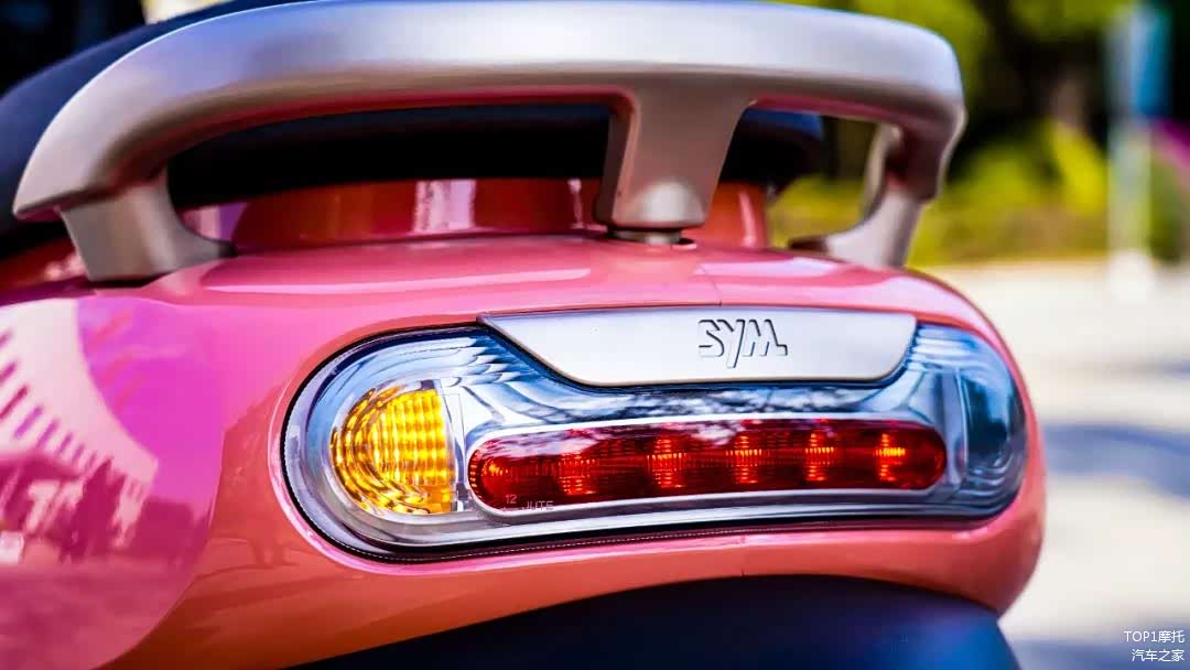 胶囊造型尾灯组颇有辨识度,同时尾灯还集成了后转向灯,同样也是全LED的灯源,与头灯一样尾灯也有类似金属材质的SYM铭牌,来提升细节和质感。