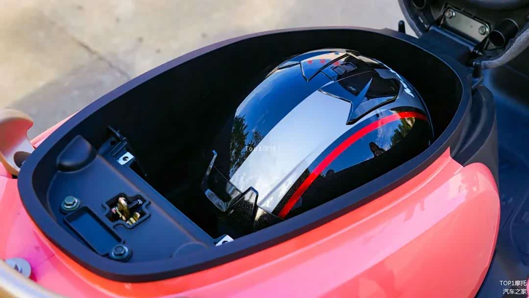 在坐垫下方是一个22.5L大小的储物空间,不仅能够轻松容纳一顶3/4盔,而且剩余的空间还能够放进去不少随身物品,比如小包包、雨伞、手套、钱包等等,相较于大部分同级车型而言座桶空间优势明显。