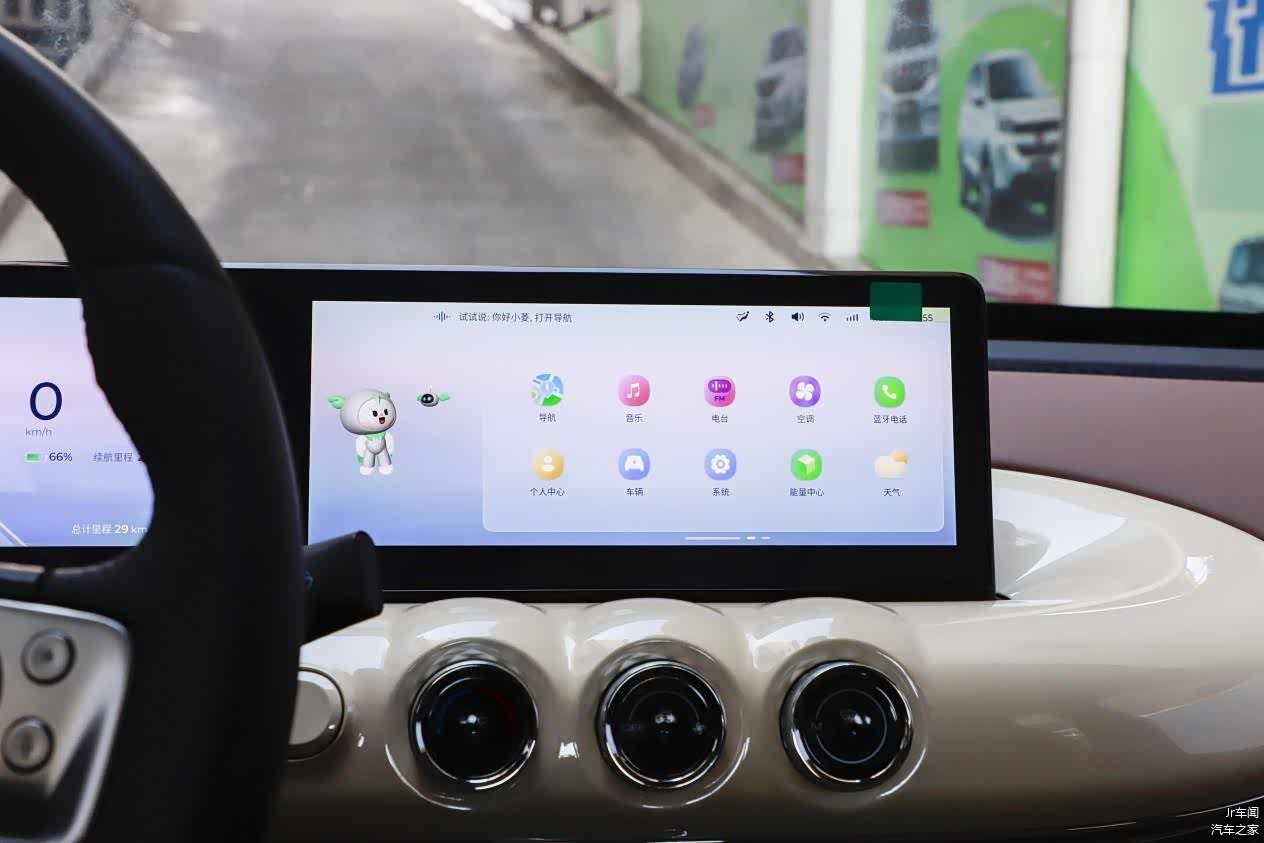 内饰则是延续了外观的圆润可爱风格,并配备了手机充电口、挂钩等实用的小配置,而且主副驾之间做成了完全打通的通道,好处是方便在窄小位置从副驾一侧上下车,坏处则是副驾的脚可能会误碰加速踏板,造成安全隐患。