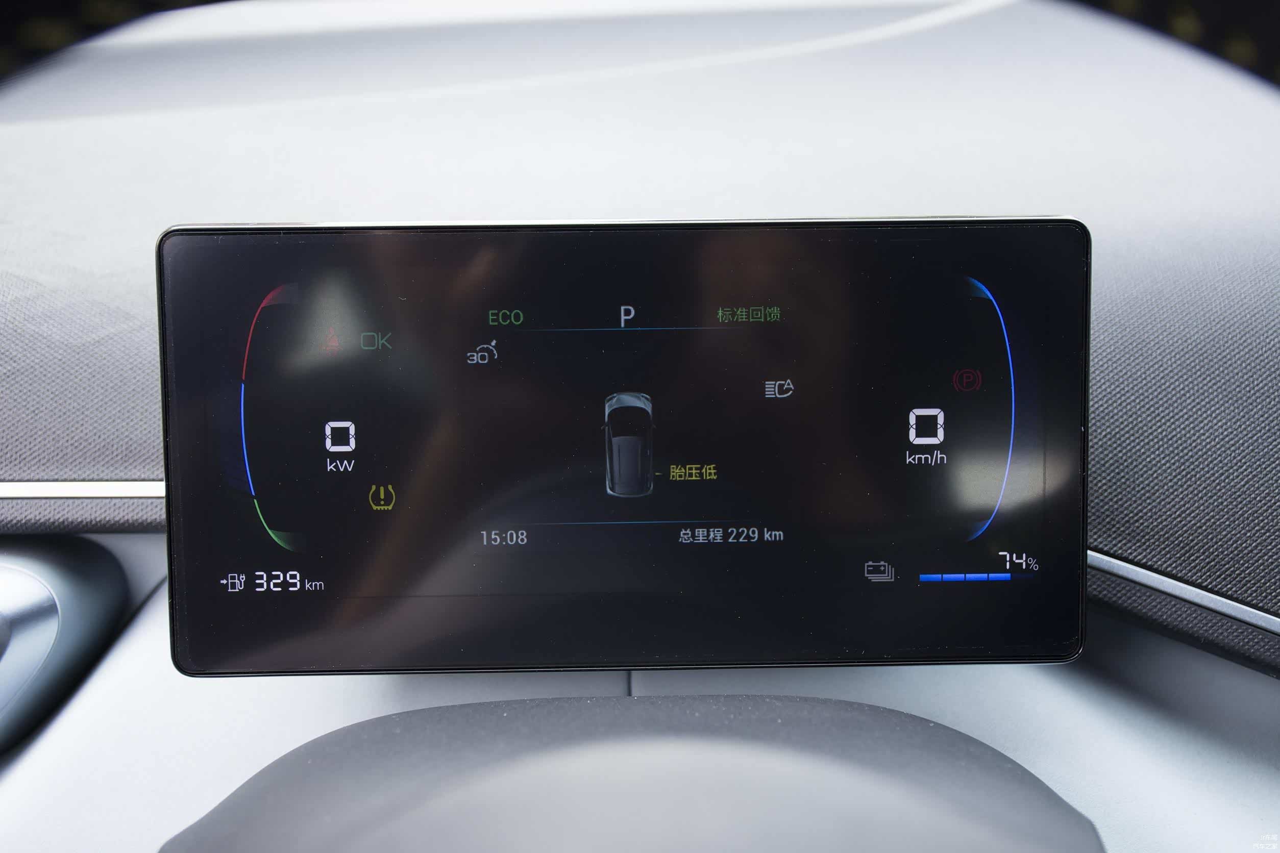 车内则是熟悉的比亚迪味道,除了标志性的可旋转中控大屏外,内饰亮点不多。不过需要吐槽的是,仪表盘是黑底且亮度偏低,背光条件下显示不太清晰,这也是比亚迪车型的老问题了。
