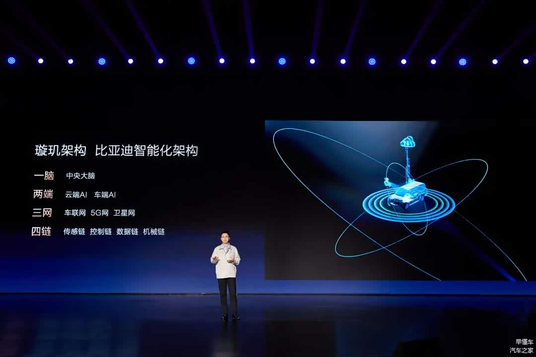 璇玑架构是比亚迪智能化架构,由一脑、两端、三网、四链组成: